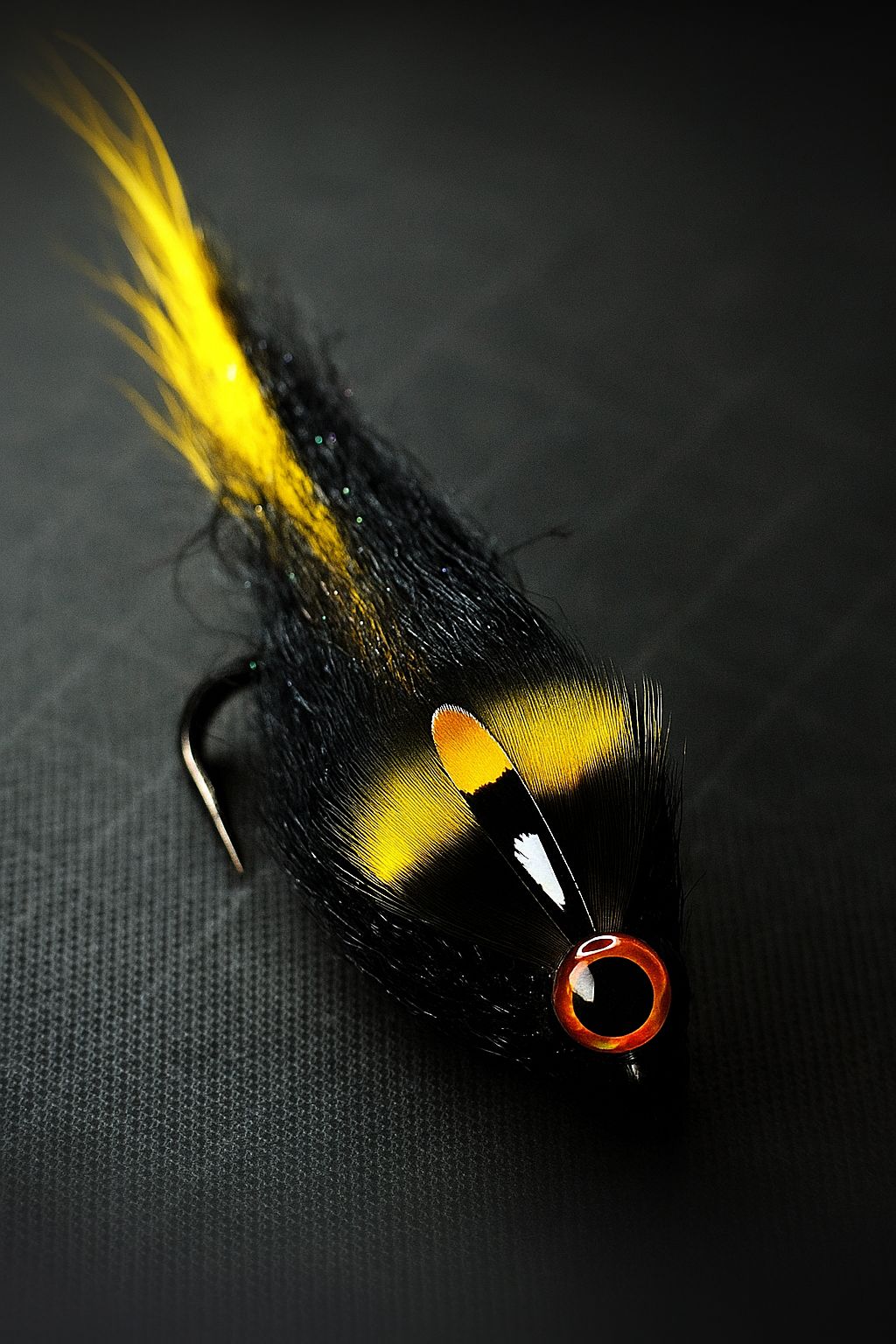 Handgebundener Baitfish Streamer Haken: Ahrex NS110 S/E #4 (Salzwasserfest, extrem scharf) Länge: ca. 5–6 cm Dekor: Wespenfarben (gelb-schwarz) Materialien: Hen Grizzly, UV-Nayat, Fiber Dubbing Zielarten: Barsch, Forelle, Döbel, kleinere Hechte, Rapfen u. v. m. Führung: Strip & Pause, Dead Drift, Two Hand Strip